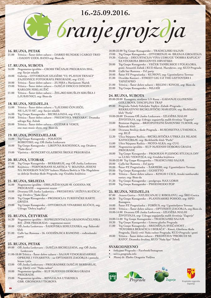Povodom tradicionalne 46. manifestacije „Branje grojzdja“ koja se održava zadnjeg tjedna u rujnu u Gradu Pregradi, HPD „Kunagora“ Pregrada Vas poziva na planinarski pohod