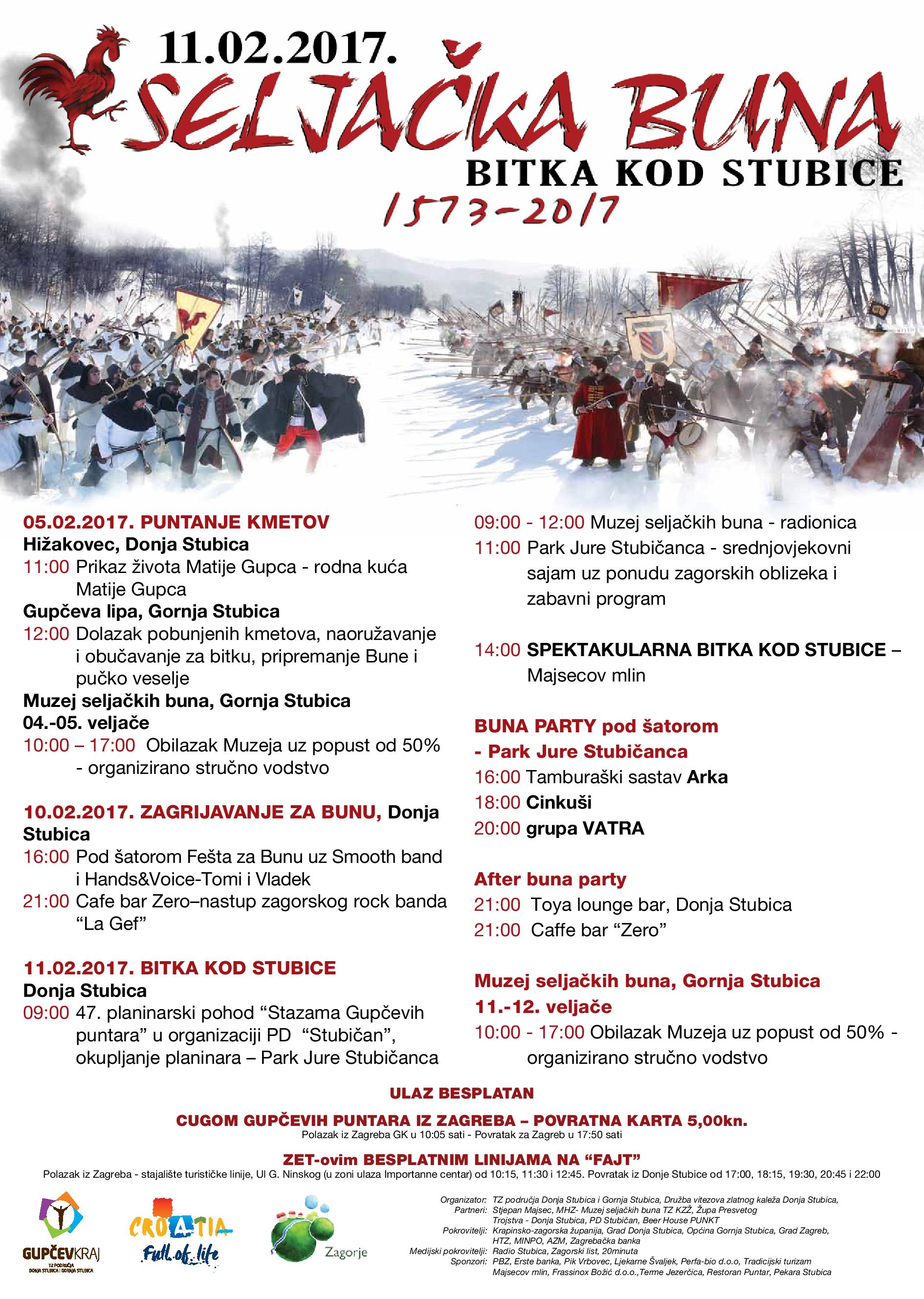 U subotu, 11.2.2017. g. HPD Kunagora organizira planinarski izlet u Donju Stubicu, tradicionalni pohod Gupčevih puntara.