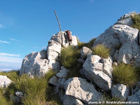 Završni dio uspona je zahtjevan, pa je žig vrha u stijenama ograđenom docu 10' pod vrhom koji je dostupan svakom planinaru.